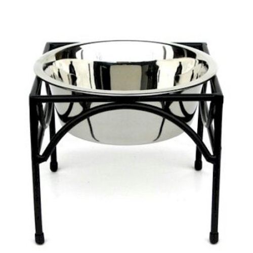This;raised dog;feeder improves your dogs overall health and posture. If your pet suffers from back pain this bowl is sure to;help. The sturdy metal frame firmly holds to stainless steel bowl in place and effectively prevents messes and spills.